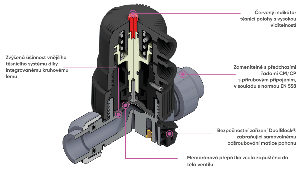 Nová membránová těsnění plně integrovaná do tělesa ventilu, chráněná proti deformaci