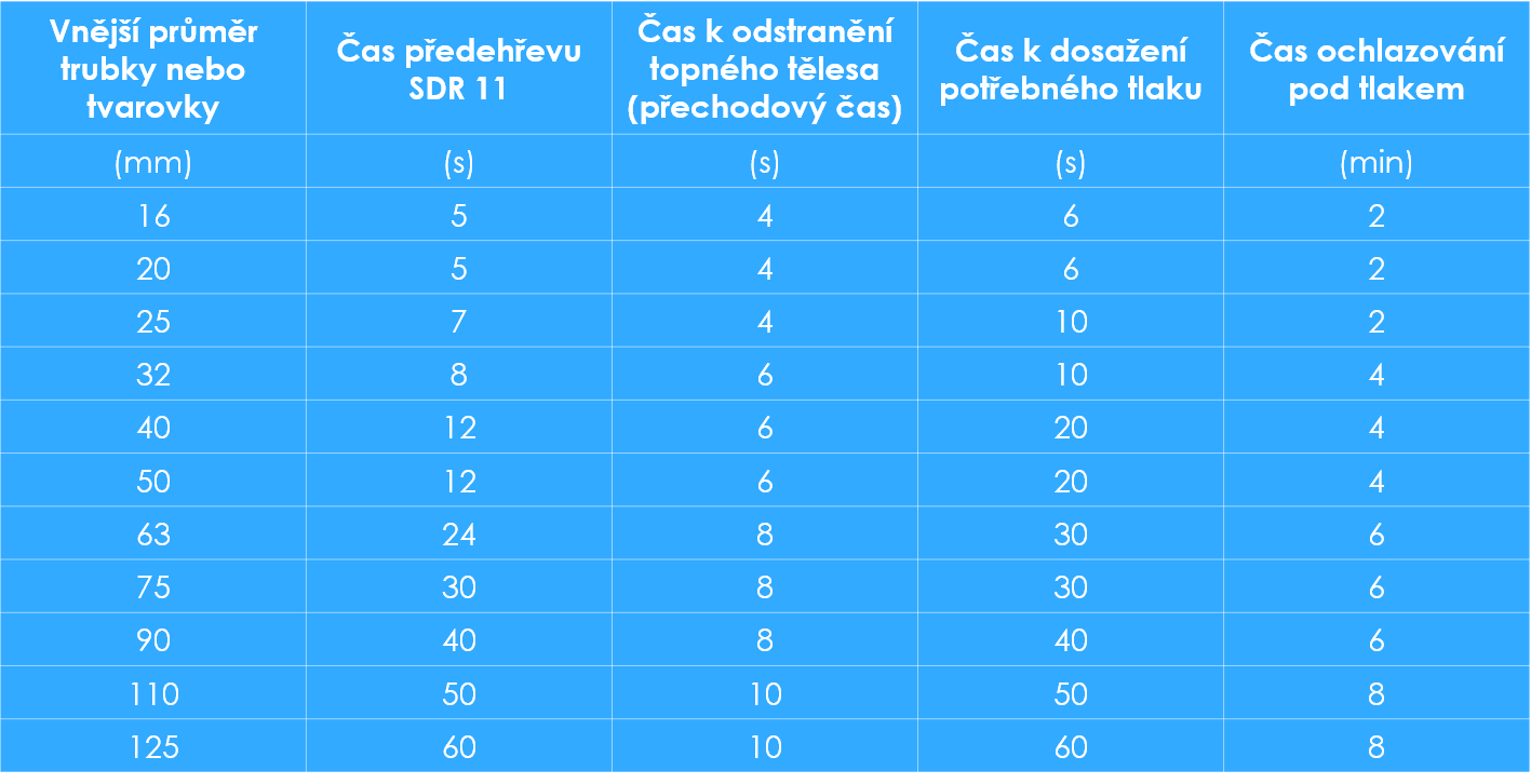 Svařovací parametry pro PE svařování na tupo (dle DVS 2207 díl 1)