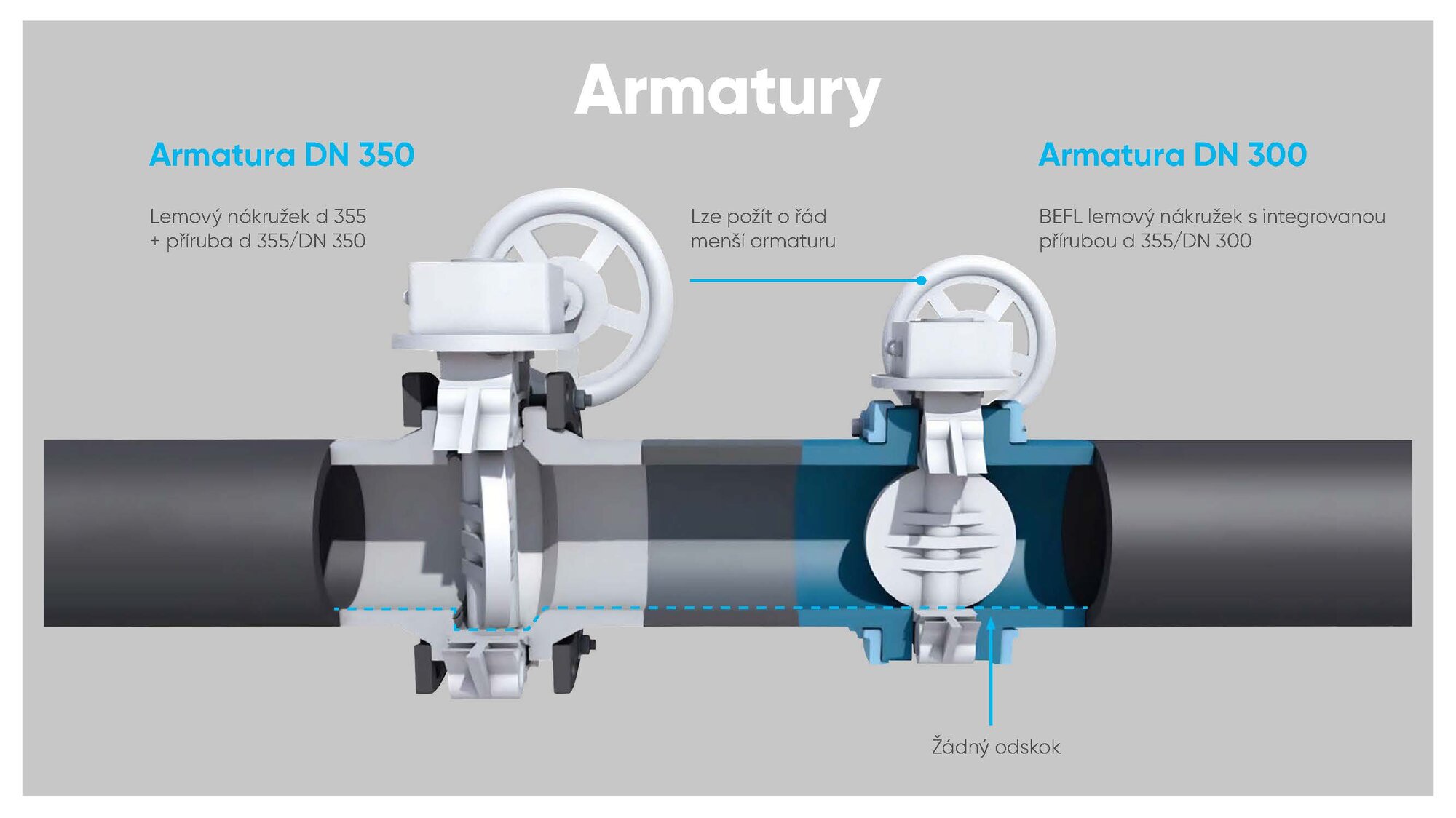 Výsledkem je stejná jmenovitá světlost potrubí DN 350!