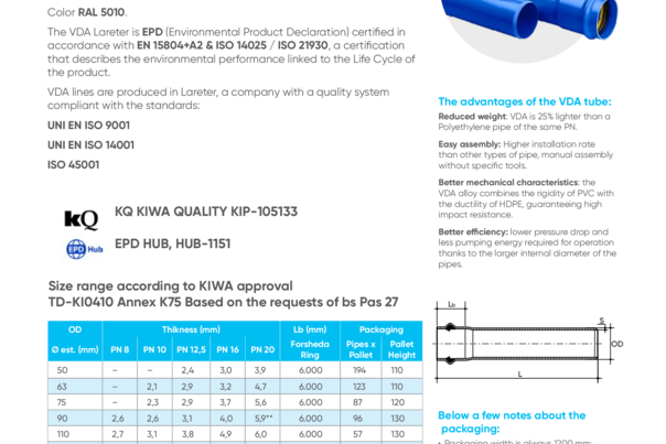 Systém VDA®: potrubí a oblouky z PVC-A pro přepravu vody