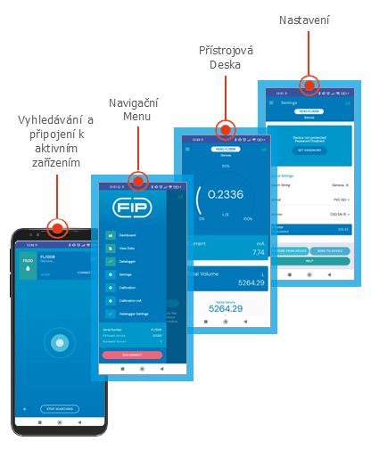 Smart Connect FIP umožňuje uživateli rychle a snadno komunikovat s vysílačem, aby měl přístup k nastavení přístroje nebo k blízkému čtení informací detekovaných během jeho používání.